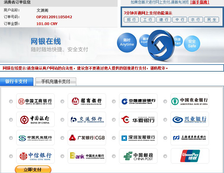 主题:[入会支付]网上银行在线充值支付流程 [收藏主题] 本贴被置顶显示